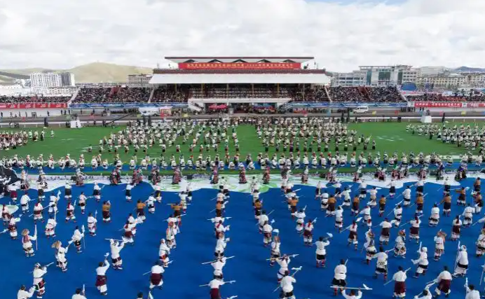 60年來,在黨中央親切關(guān)懷、西藏自治區(qū)黨委堅強領(lǐng)導(dǎo)及對口支援省市和企業(yè)無私援助下,那曲各項事業(yè)取得全方位進(jìn)步與歷史性成就。開幕式文藝演出以“馬”文化為核心,分三大篇章展開,四川、青海等地馬術(shù)表演隊與本地隊伍共展精湛技藝;千人共舞《禮贊甲子》、器樂合奏《風(fēng)從浙江來·樂在那曲揚》等節(jié)目,生動呈現(xiàn)西藏自治區(qū)成立60年輝煌成就與對口支援成果。